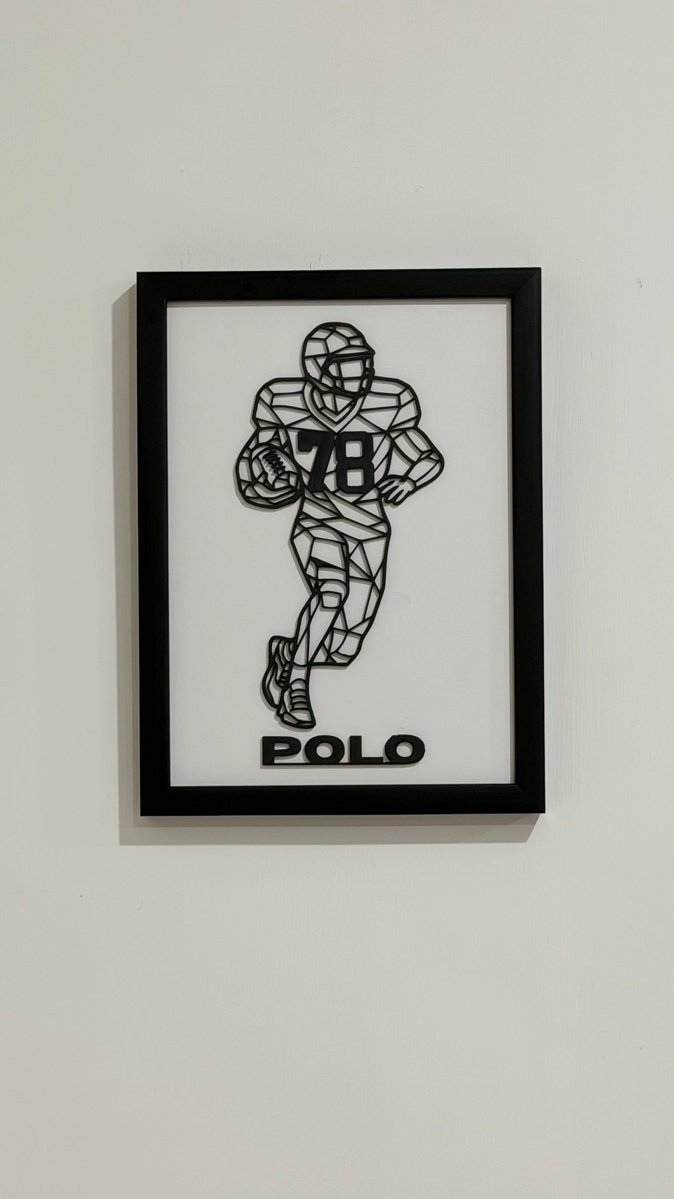 Cuadro decorativo personalizado de jugador de fútbol americano en poly-line art