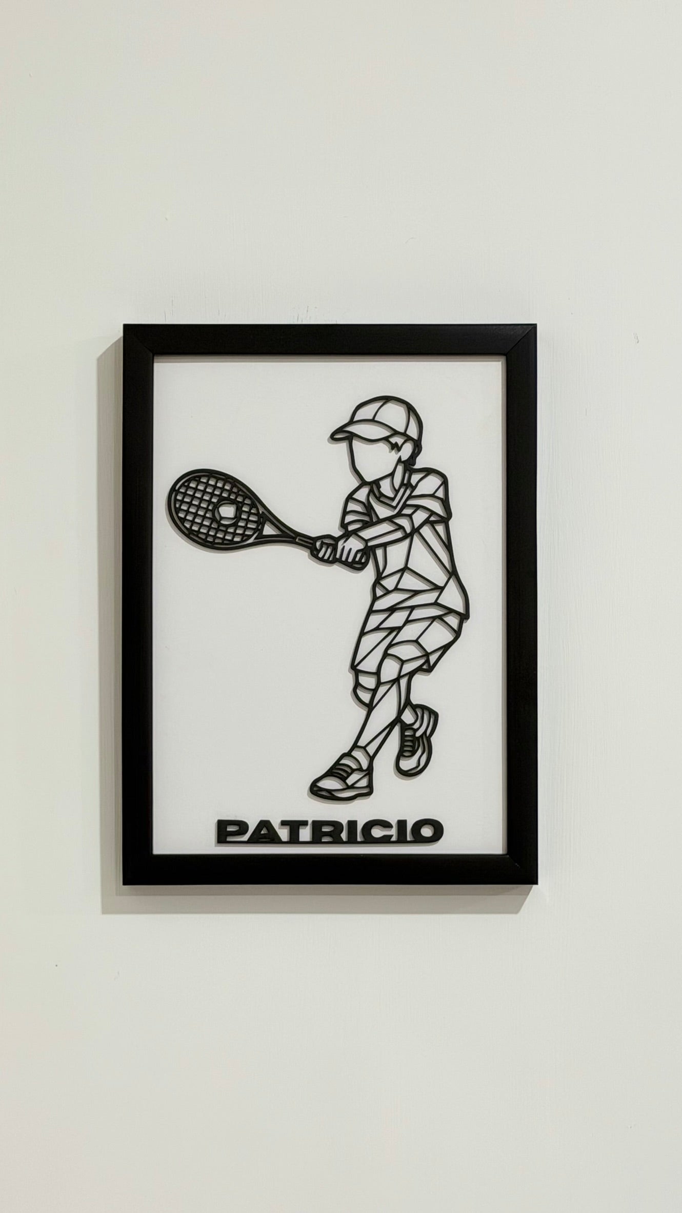Cuadro decorativo personalizado de niño jugador de tenis en poly-line art