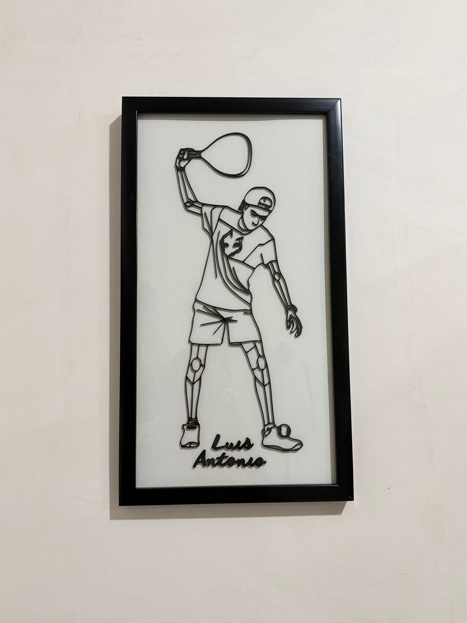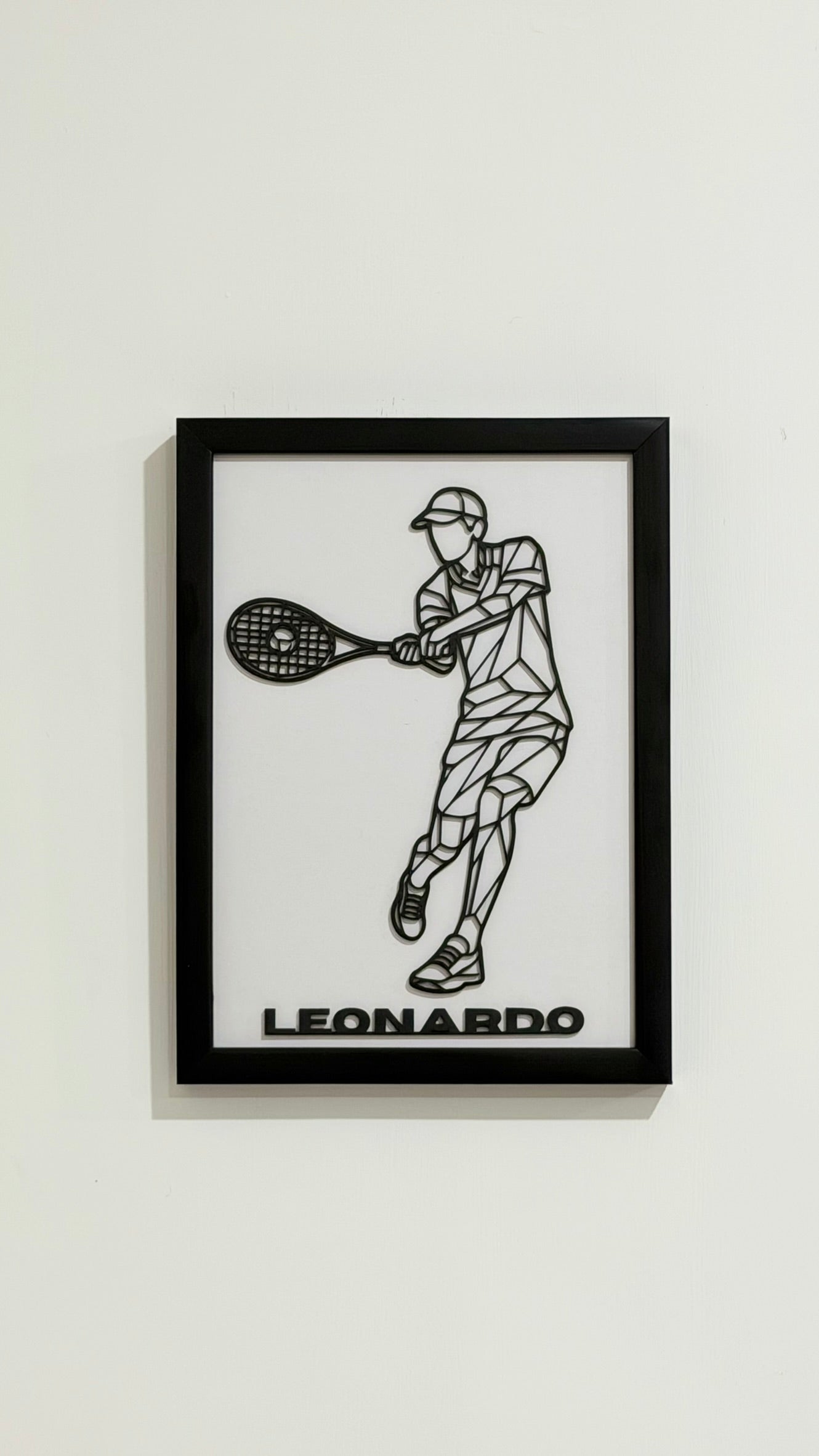 Cuadro decorativo personalizado de jugador de tenis en poly-line art