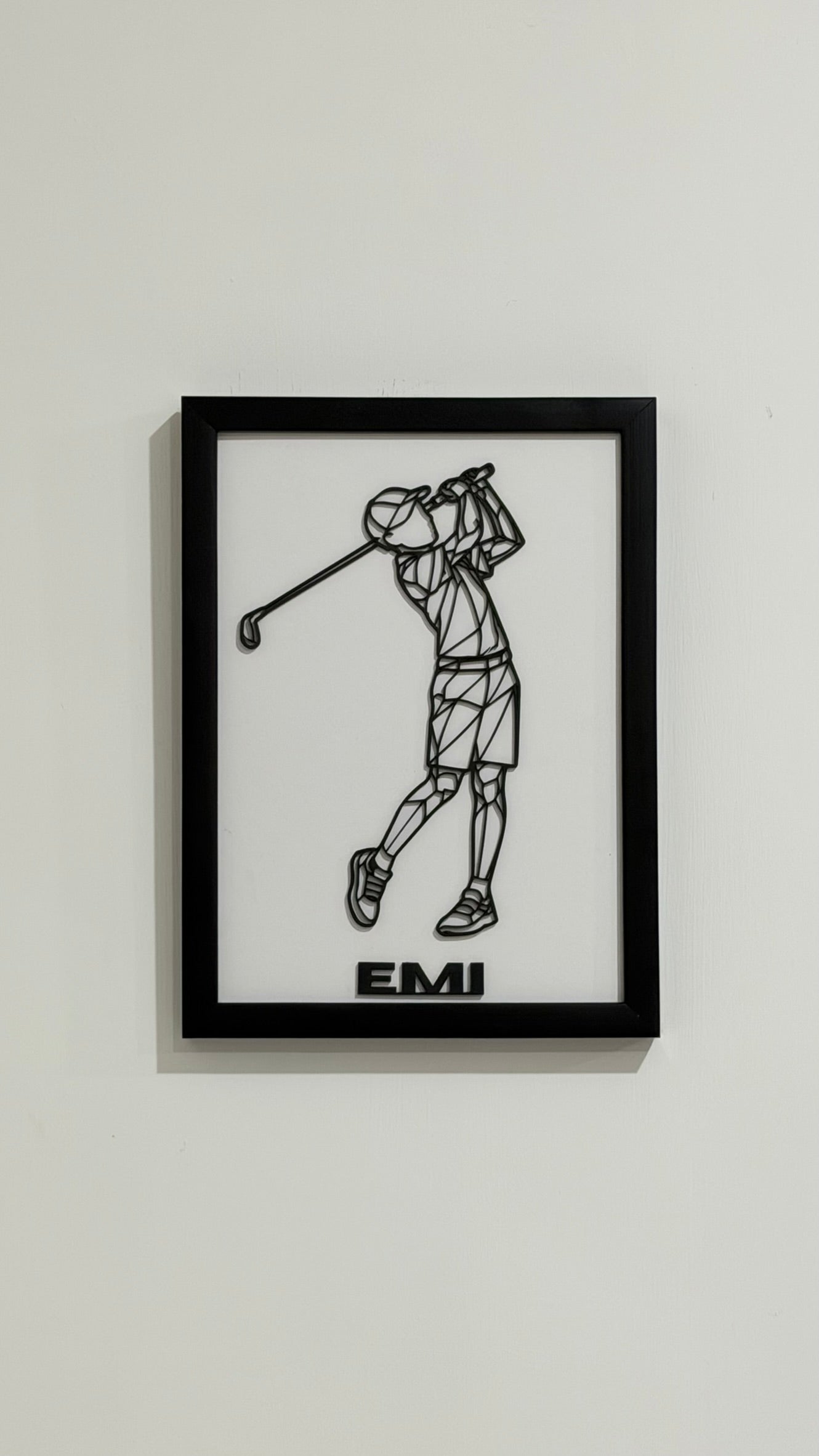 Cuadro decorativo personalizado de jugador de golf en poly-line art